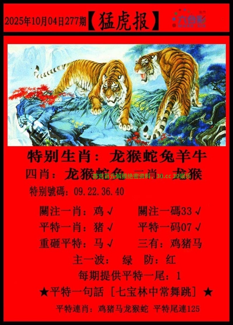 273期√双波中特√〖红波绿波〗开:虎04错 |