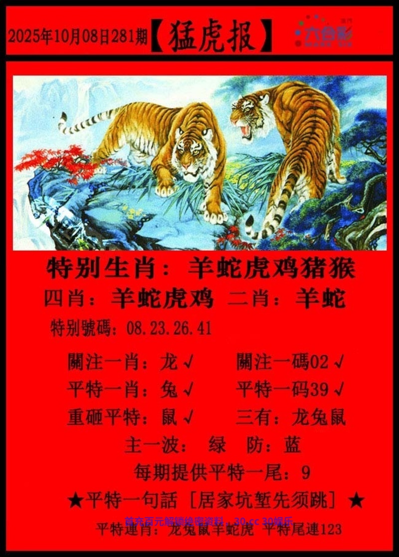281期:美丑两肖〖吉美+鼠虎〗开:羊47准 |